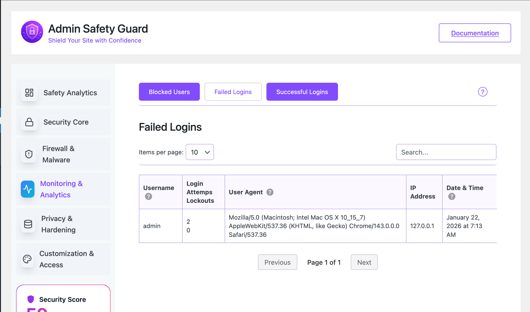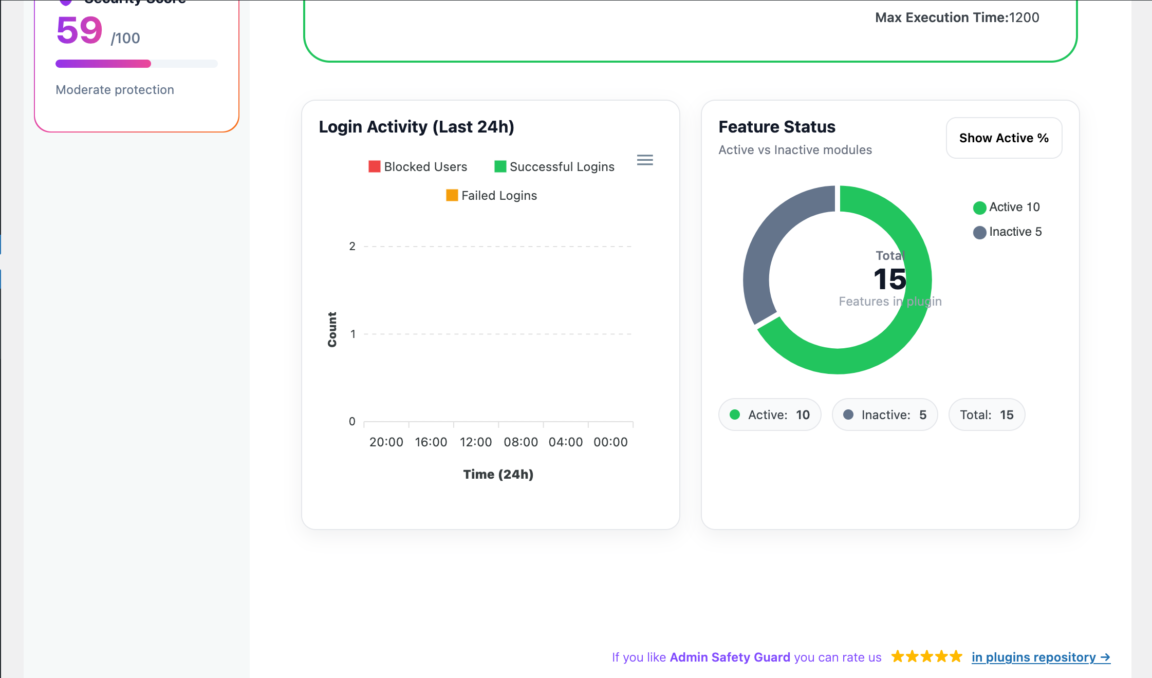 - Proactive, Frontline Defense: Rather than waiting to clean up after a hack, Admin Safety Guard stops attacks before they breach your server. By hiding your login page with Custom URLs and instantly blocking bots via Smart 404 Blocking and Firewalls, hackers can’t attack what they can’t find.