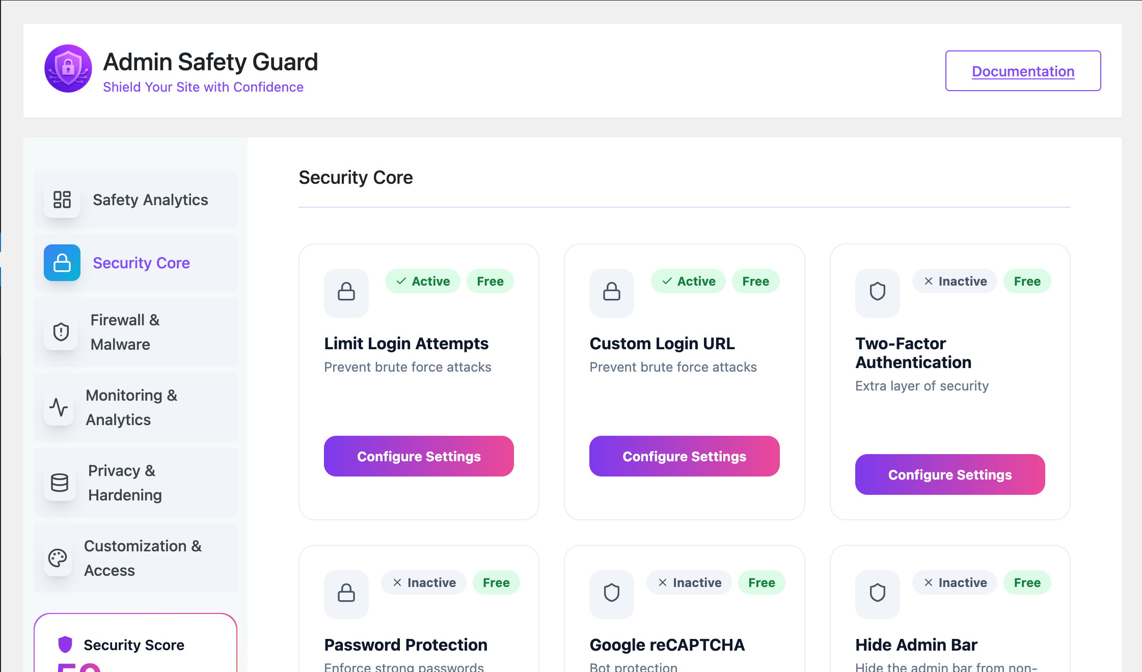 Admin Safety Guard is engineered to bridge the gap between enterprise-level security and everyday usability, providing a fortified shield around your website without the bloated code that slows down your server.