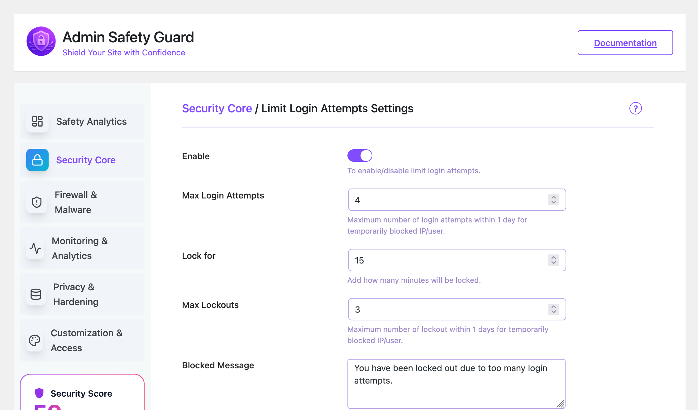 📋 Limit Login Attempts: Block repeated failed logins to prevent brute-force attacks.