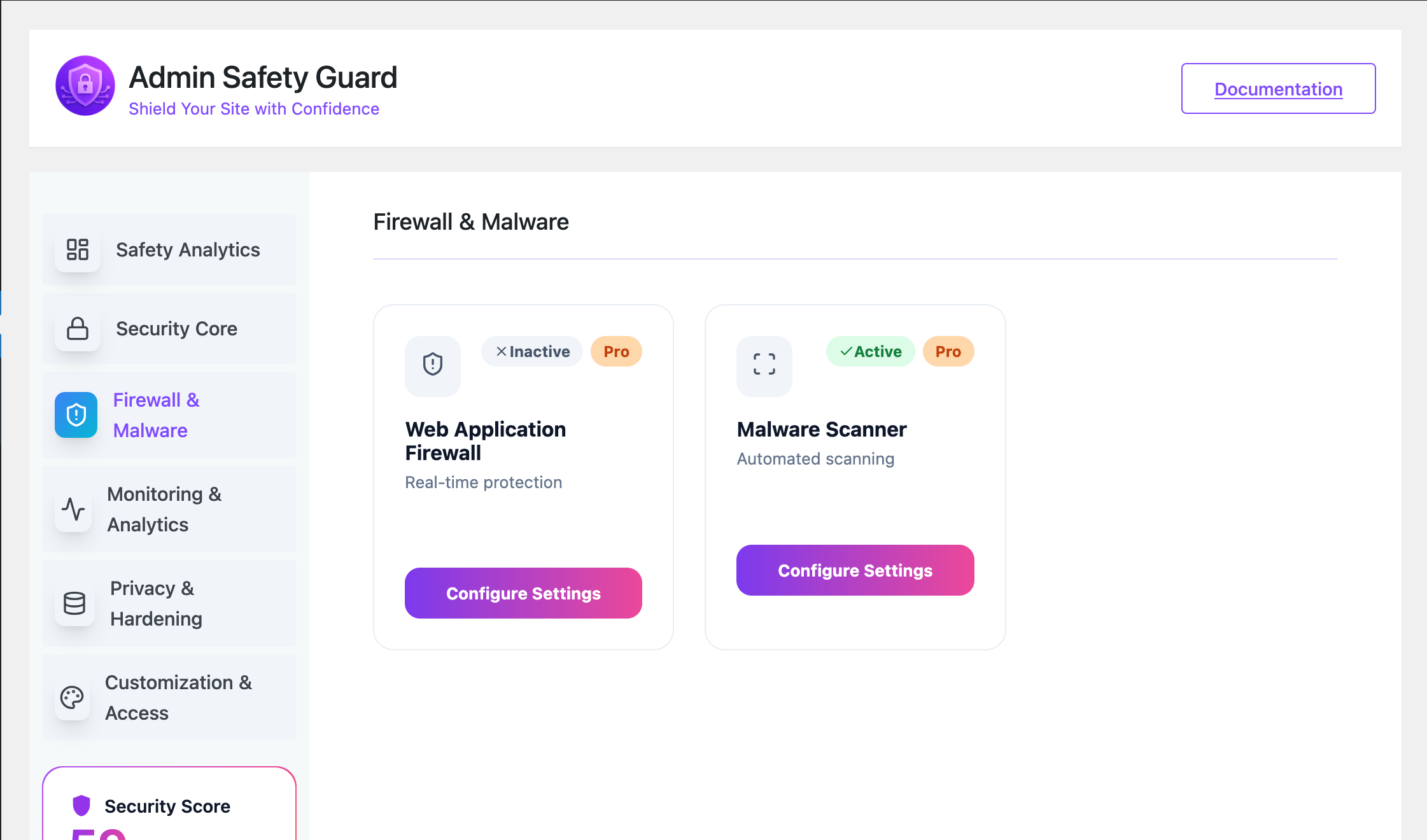 - [New] – Introduced a dynamic Security Score system based on overall site protection status.