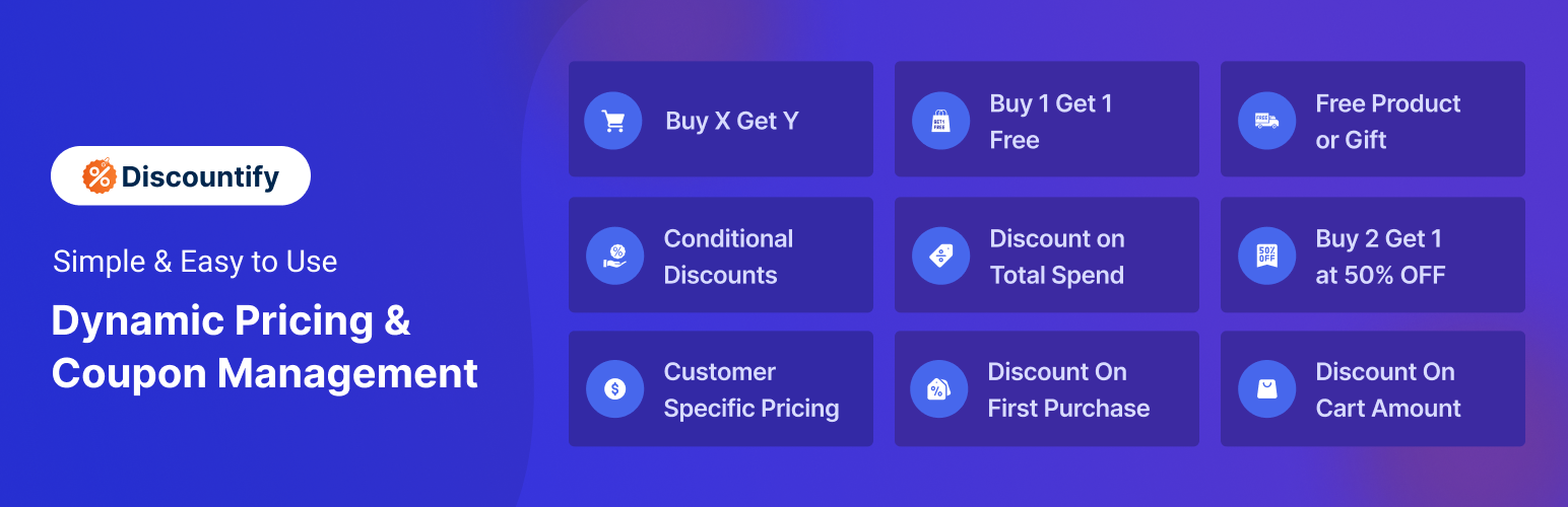 With its user-friendly interface and powerful features, Discountify is the lightweight yet effective plugin you need to attract customers, boost conversions, and drive revenue growth. Simple to set up, but loaded with the tools to maximize your store’s potential.